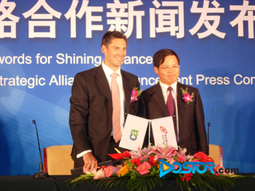 CA亚太及日本地区区域渠道销售副总裁Nick Ellis(左),神州数码软件业务本部总经理李胜利(右)