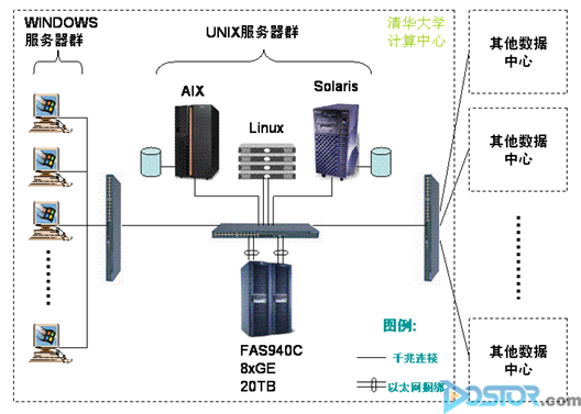 本次实施最终采用了NetApp FAS940C,实现了服务器和存储设备的整合,为虚拟空间系统、网络学堂系统、科研服务系统和数据库系统提供了存储和备份空间。