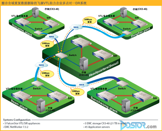 用户的IT部门如今可以从4个分布的站点将数据集中到位于公司总部的数据中心,从而有效的降低了存储基础架构成本。飞康VTL的灵活性使企业存储及灾备架构的未来扩展也变得更加简单。