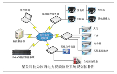 陕西省电力公司以市场为导向,积极发展电力设施的监控、无人值守变电站的综合管理。2007年,陕西省电力公司大力推进电网发展方式和公司发展方式转变,电网建设步伐全面加快,连续第三年增速超过20%。进入2008年,陕西省电力公司全面实施发展再上新台阶,已进入了以建设750千伏主网架为特征的新阶段,在这个发展的新阶段,陕西电力公司希望能够借助高科技信息化技术,设计一套视频监控系统,进一步提高电力系统的管理和维护水平,打造安全可靠的现代化电力系统。在这个视频监控系统中,摄像头数量达到了300个,采取视频服务器的方式,按照2CIF的格式全天候监控,数据将保存15天。星盈科技作为一家在监控系统领域经验丰富的解决方案提供商,根据陕西电力公司的需求在电力监控系统中必须遵循国家有关技术标准,并按照以下设计原则进行方案的设计: