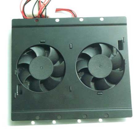 这款硬盘冷却器其实就是一块带有二个大散热风扇的硬盘保护器。它为长方形的托盘结构。表面安置的二个大型超薄散热风扇能很好的将硬盘工作时产生的热量及时从内部吹送出去,达到给硬盘降温的目的。