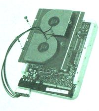 下面是IBM 13.5G 7200转/分钟,2MB缓存的硬盘,这款硬盘虽然技术上比较成熟,但是在发热量方面还是要比一般的5400转硬盘要多一点。我们将这块散热风扇盖在硬盘的下表面(就是有很多电路芯片的一面),然后上紧螺丝。