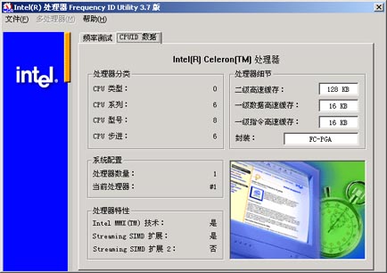 图一:Intel Processor Frequency ID Utility(Intel处理器频率/ID实用工具)