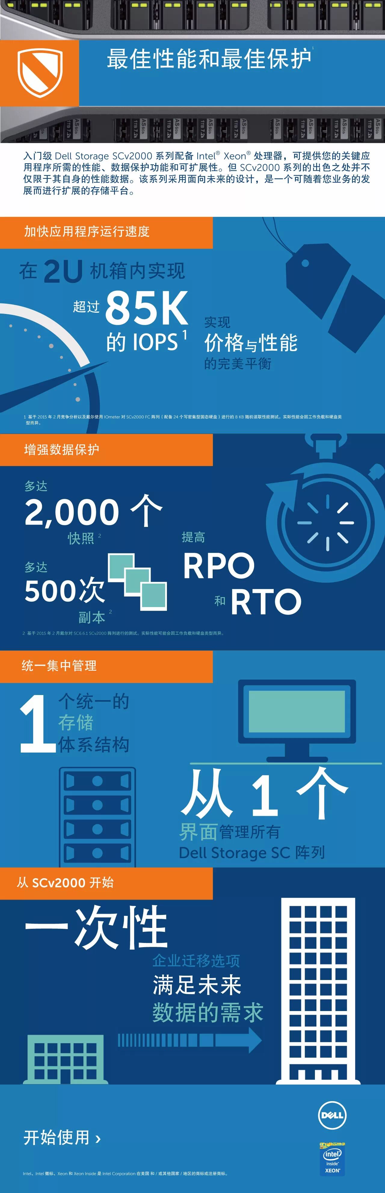 Dell Storage SCv2000是戴尔SC系列家族最新的成员,它完美的诠释了什么叫“小身材 大智慧”:它为客户提供与戴尔高端的SC系列阵列具有相同的通用管理功能,强大的核心功能,提供的是同类最佳的性能和保护,充分体现了戴尔存储的战略:“为客户带来更多高端存储功能,为客户提供价格实惠的高性能,为客户实现未来的灵活性!”