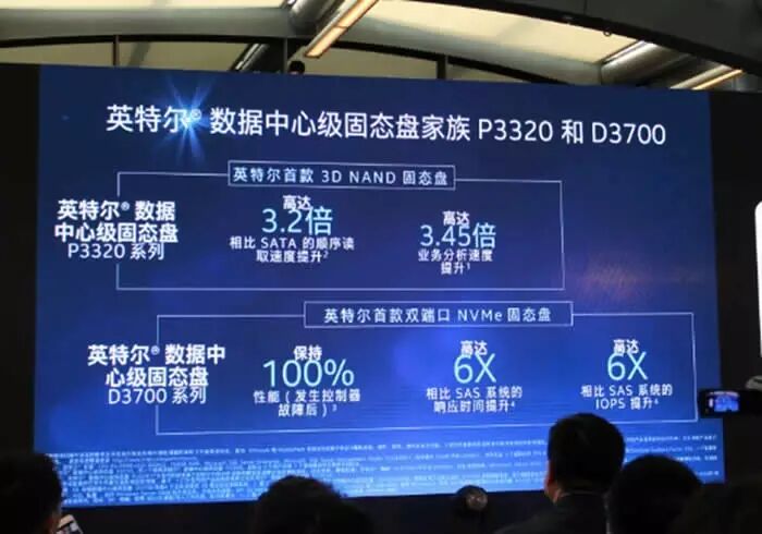 在英特尔的新闻稿中,对于新产品的介绍也是比较简单:DC P3320和P3520是首款基于3D NAND技术制造的固态盘,针对高密度存储市场,比较对象是SATA固态盘;DC D3700和D3600是首款采用NVMe协议双插槽PCIe 固态盘,可提供关键冗余和故障转移功能,对比的对象是双端口 SAS 解决方案。