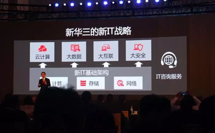 新华三的战略是在双品牌计算、存储和网络产品技术基础上,提供面向包括大互联、大安全、云计算、大数据和IT咨询服务在内的一站式、全方位IT解决方案。