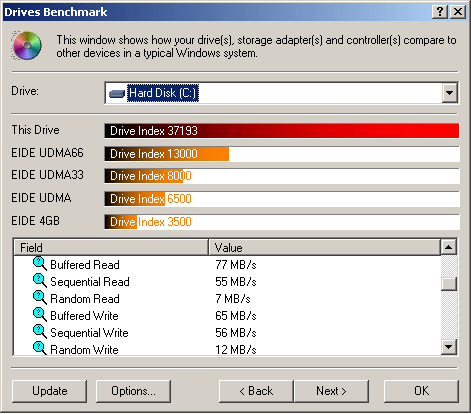 图2:Sandra 2001 Drives Benchmark测试结果实例