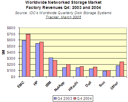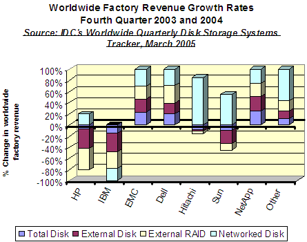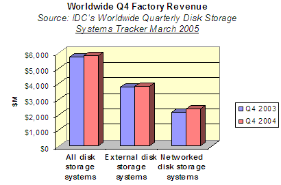 IDC公布,2004年第四季度外部存储设备厂商营收为38亿美元,仅比去年同期增长1%。