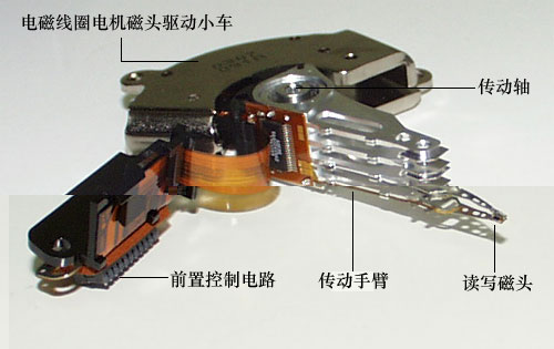 (2)、磁头驱动机构。盘硬的寻道是靠移动磁头,而移动磁头则需要该机构驱动才能实现。磁头驱动机构由电磁线圈电机、磁头驱动小车、防震动装置构成,高精度的轻型磁头驱动机构能够对磁头进行正确的驱动和定位,并能在很短的时间内精确定位系统指令指定的磁道。
