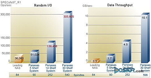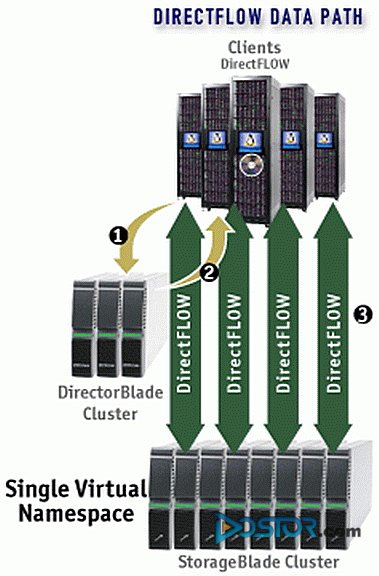 说起线性提高,Panasas的工程师表示,这有赖于Panasas的DirectFLOW数据通路,带外的DirectFLOW数据通路为文件系统主干创建了高度并行的路径??Panasas能够从数据通路中分离出控制通路,在集群节点和独立的存储刀片之间建立多个并行数据路径。每一个集群接点都可以与Panasas存储设备之间进行直接访问,对于Linux集群上的每一个计算节点来说,通过Panasas的存储解决方案,都可以去访问实际的存储设备。不存在传统SAN和NAS存储系统固有的I/O瓶颈和扩展困难问题。这种数据传输的能力使得系统性能与系统容量的增加成线性关系。这样一来,集群中的所有节点能够同时以最优的速度存取数据。