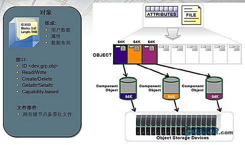 我们知道为了弥补SAN和NAS的不足,Linux 集群的新型文件系统??对象存储文件系统成为了Linux 集群系统高性能文件系统的市场热点,对象存储系统是一种基于对象的高性能分布式文件系统,它将数据以对象的方式存放在存储设备中,对象是系统中数据存储的基本单位,一个对象实际上就是文件的数据和一组属性的组合,这些属性可以定义基于文件的 RAID 参数、数据分布和服务质量等。在基于对象的存储系统中,所有的对象通过数据布局的策略分布在磁盘上,而传统的存储系统中用文件或块作为基本的存储单位,在块存储系统中还需要始终追踪系统中每个块的属性。