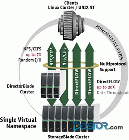 另外,Panasas的集群系统上捆绑了一种被称作Panasas ActiveScale文件系统(PanFS)的独家专利并行文件系统。PanFS文件系统设计成能动态地将指挥刀片和存储刀片联接到一个单一集群的存储网络中。不同于传统的网络存储系统需要昂贵的文件服务器升级,增加指挥刀片和存储刀片,提供一个单一的,可扩展的存储集群就能够容易地提高Panasas系统的性能。每个新的指挥刀片增加一个数据通路,就提高了总体系统性能。