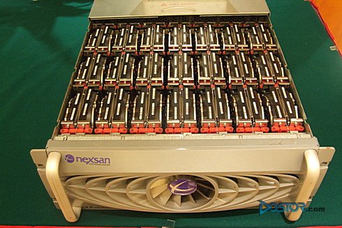 谈到高密度磁盘阵列,我们不能不提一个厂商??Nexsan,这家来自美国的厂商,虽然在去年才刚刚进入中国,还不为我们所熟知,但是它的高密度磁盘阵列产品,却是业界非常知名的。4U空间内集成42个驱动器的SATA Beast磁盘阵列让很多厂商望尘莫及,后来在我们与Nexsan的工程师沟通时才得知,全世界提供如此超高密度的磁盘阵列的厂商只有两家,而Nexsan相比它的竞争对手,优势则在于:Nexsan有SATA Beast这样一款量产型产品,它的竞争对手却只是停留在样机上。
