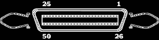 上图所示为Centronics的8位连接器,共有50针分为两排,它可以连接的设备数目最多。