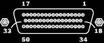 上图所示为Sun公司的DD-50SA连接器,共有50针,分为三排。