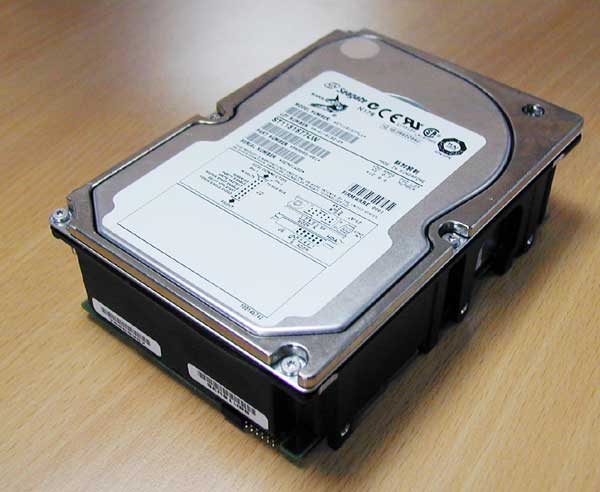 最后让我们来看看SCSI系统的核心人物??SCSI设备,虽然SCSI设备有许多,例如扫描仪、光驱、磁带机等等,但目前最为常见的就是SCSI硬盘,在此笔者就只对其作个简单介绍。普通IDE硬盘相信大家是很熟悉,经常接触,而SCSI硬盘从外型上看跟普通IDE硬盘没什么区别,只是可能会厚实一些,因为SCSI硬盘封装的盘片一般都比较多,如希捷酷鱼180,它全部盘片数多达12张。