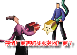在这种模式下,EMC实际上通过那些没有竞争性关系的厂商,通过弥补他们在产品上的劣势,来完成自己的存储设备搭配服务器销售的目的。这个方法可以说非常的巧妙,既能利用服务器厂商的销售渠道、销售人员来卖他们的产品,更能够抓住进行服务器采购的用户的后续需求,不用什么精力就把自己的存储设备卖出去了。这和买一家服务器厂商,从而面对越来越多的服务器厂商的进攻有着天壤之别。存储厂商们最好的揉和服务器的方式也许就是进行OEM了。