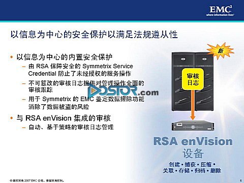 Symmetrix操作环境的最新一代Enginuity 5772 ,拓展了3月份时所披露的性能细节,尤其是在信息中心的安全功能,如Symmetrix Service Credential如今可以受到RSA的保护。