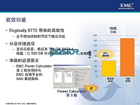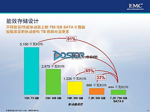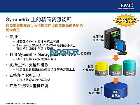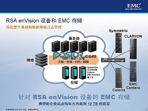 值得注意的是,DMX-4也能够支持SATA磁盘,包括是EMC最新的750GB SATA II 磁盘驱动器,以及FC磁盘驱动器。在此前,Symmetrix存储平台只能够使用FC磁盘。这使得Symmetrix成为ILM的第一个企业级分层存储平台,而客户也就可以把高性能的4 Gbps FC磁盘与低性能高容量的SATA II磁盘混合使用。除了支持远端大型机测试以及扩展外,它也支持IBM的z9系统商业级大型机。同时,此次升级的将更多的RSA的安全功能包括了进来,完成了与enVision集成的审核能力。