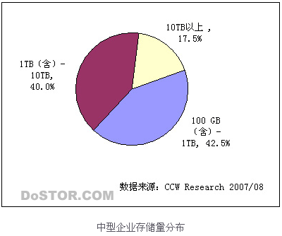 近几年来,无论是全球还是国内市场,中小企业一直是存储领域关注的热点。从国内市场来看,行业市场中,除了银行、电信等传统重点行业市场需求,政府、教育、制造、医疗等行业用户的采购已经成为拉动存储市场增长的新生力量。而在这一市场中,中型企业又构成了需求的主要部分。2007年7~8月,计世资讯(CCW Research)针对多个行业的中型企业进行了深入的调研,研究发现,目前中国中型企业独立存储的趋势明显。