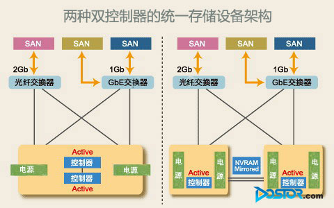 在传统的存储网络上,SAN与NAS或FC SAN与IP SAN之间泾渭分明,因此单一系统的损毁或故障失效,只会影响到存取该系统的前端应用程序而已。而在采用统一存储设备的环境中,一旦系统损毁或故障,造成的影响会涵盖到前端所有的服务器,因此确保系统的可用性,将是统一存储设备的重要指标。