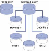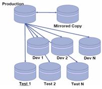 - l 可快速地刷新测试环境。如果用户在环境中遇到故障,他只是破坏了克隆,只需请求主环境的另一份副本,数分钟而非数小时就可重新回到工作状态