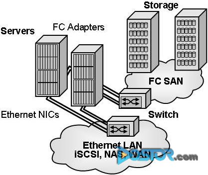 对于一般目的的网络来说,以太网是一个流行的选择。以太网正扩展到能够支持FCoE以及提升后的低延迟性数据中心以太网,从而不需要将存储输入/输出活动堆积到IP。这种情况下,IP能成为长距离的良好解决方案,可以用于网络附加存储,或是用于同存于同一以太网的基于低成本iSCSI块的访问。无论喜不喜欢,将光纤通道映射到普通的基于以太网的融合或统一的网络,将是不同的存储和网络接口、商品网络、经验和技能集、以及性能或决定性行为之间的一个垫脚石。如无其他,一个融合的以太网将使不同区之间的迁移更加容易,并使迁移过程中的网络阻力最小。