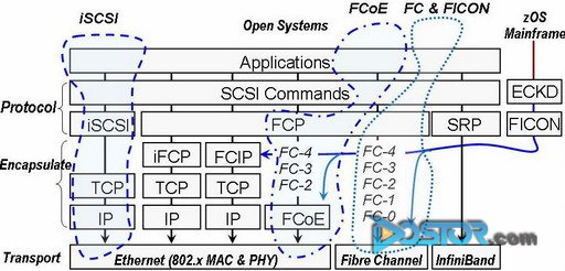 图3: 不同的数据中心输入/输出协议、接口和传输的情况