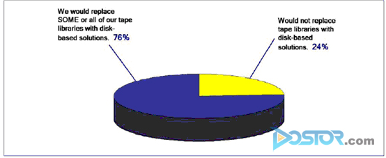 ESG研究访问了163名IT专业人士,询问他们是否愿意使用磁盘对磁盘式备份方案来部分或全部替代磁带式备份,结果76%的人表示他们愿意这么做。