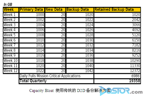 下面显示了一个中等大小的备份环境增长是何等的迅速: