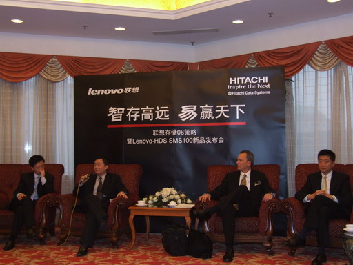 那么,HDS是基于何种考虑与联想携手SMS100与中小企业市场的呢?联想的3E到底包含着什么样的理念呢?2008年一直不温不火的联想存储,将何去何从?在会后,我们存储在线专访了联想中国服务器业务部总经理牛红、联想中国服务器业务部销售总监王峰、联想中国服务器业务部产品业务总监闻贤、日立数据系统有限公司全球海量应用业务高级副总裁Mike Walkey、日立数据系统有限公司中国区总经理柯愈强、日立数据系统有限公司中国区渠道业务总监蒋慰慈、日立数据系统有限公司中国区总监卢俊峰等两家公司的高层人士,以求为上面的问题找到令人满意的答案。