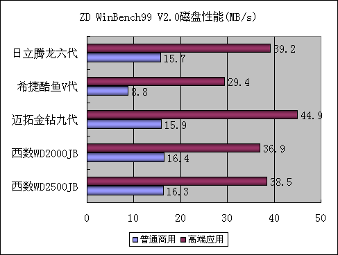 eTesting实验室进行的WinBench99 Disk WinMark基准测试,是利用一个旧版本的高级应用程序来测试硬盘的台式机性能。Disk WinMark虽然推出的年代较早,但也是一个行业的标准。故以下测试结果仅供参考,但在结果评估中,我们不给予考虑。