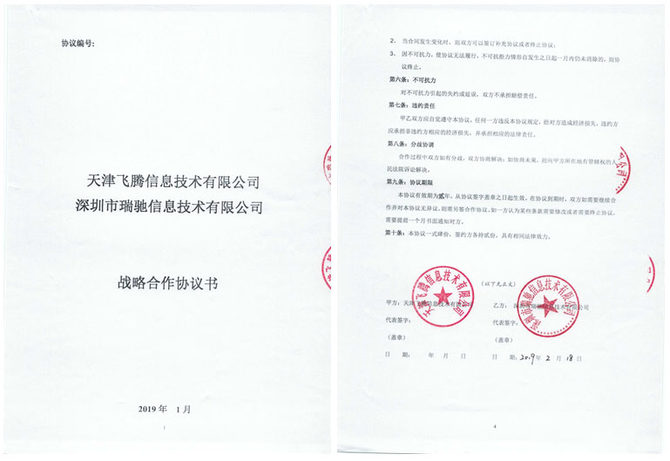 2019年2月,深圳市瑞驰信息技术有限公司与天津飞腾信息技术有限公司正式签署战略合作协议书。本次合作将实现双方在技术和市场上的优势互补,孵化出更创新和更具竞争力的国产存储产品,拉动上下游产业链发展,丰富国产化生态资源,从而保障我国信息安全和网络安全。