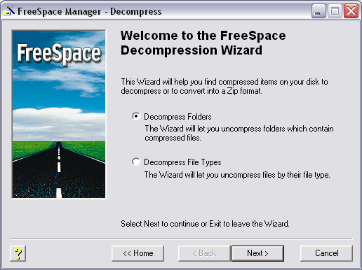 3、Decompress(解压缩) 虽然使用FreeSpace压缩目录后不影响文件和程序的使用,但是如果需要将某些文件拷贝出来,还是要先解压才行。调用此功能后,只要在压缩列表栏中选取需要解压缩的压缩包之后点击“Next”就可以了。
