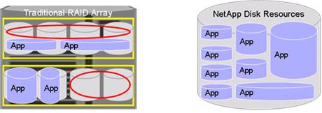 NetApp 将所有磁盘卷分布在大量条带中,以便在不牺牲性能的情况下获得更高的利用率。
