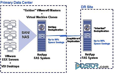 使用重复数据删除所节约的成本可以使 DR 在成本可能会受到控制的情况下变得切实可行。例如,有个客户曾报告在重复删除其 VMware Virtual Desktop Infrastructure (VDI) 环境之后,为其桌面提供 DR 所需的存储和带宽变得很少了,并且为其 VDI 环境和 VI3 环境添加 DR 切实可行。