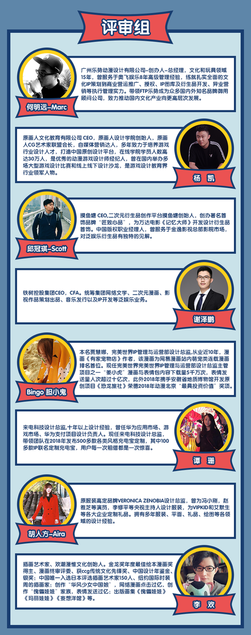 作为本次大赛的联合主办方,同时也是大赛评委之一的摸鱼塘CEO邱冠琪表示:“这次大赛,我们邀请到了行业内非常专业的评委老师,他们都在影视、插画、漫画行业从业十几年以上,确保了本次大赛的专业性。“据了解,本次大赛邀请到的评委团有:FTP乐势CEO何明远、原画人CEO杨凯、摸鱼塘CEO邱冠琪、铁树控股集团CEO谢泽鹏、欢潮漫惟文化创始人李欢、来电科技设计总监谭珊、若森数字产品总监胡人方-Aira、完美世界IP管理与运营部设计总监贾慧娜。