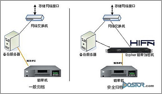 除了硬盘的安全,还可以通过引入独立的加密设备,对公司已有的磁带归档系统添加安全特性,Hifn公司的Sypher系列磁带加密机产品就属于这类。