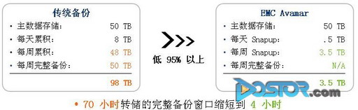 重复数据删除技术加上归档技术的应用,让数据量极大减少,让备份到磁盘成为可行,让数据的可用性、可管理性、安全性得到保障,数据的介质更新和长期保存成为可能。EMC在这个领域先一步的行动,也让它成为应对信息爆炸增长的排头先锋,再次加强了它在产业界的领导者地位。