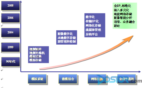 DoSTOR存储在线 6月30日报道–一谈到视频监控技术和方案的发展历史,业内人士都会如数家珍,模拟、数模结合、矩阵、DVR、网络数字系统、全数字系统等等如云。20年视频监控技术的发展,逐步的从关注图像技术本身(例如分辨率、照度、环境适应、光增益光抑制、压缩算法、延时等),向图像的传输(光纤/IP)、接入(无线/IP Camera)、保存(本地、集中式、分布式、备份)、价值开发(智能分析、联动)方向发展,而视频监控的需求,也逐步从10-50个监控点,向几百、成千上万、数十万个监控点规模发展,从几根光纤、到局域、城域到广域。