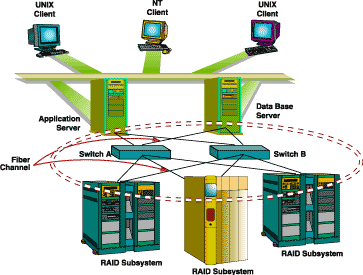 由于异构服务器的群集可以:把数据当作是一个单一的系统映像来观看,所以SAN结构实际上是以一种全共享的方式提供给可扩展的群集。虽然现在使用多路径的SCSI使这种想法成为可能,但可扩展性仍然是存在的一个问题,因为SCSI的距离受到限制。一般的SCSI允许传送距离为25米,同时SCSI连接器的性能也限制了连接到服务器或子系统上的设备数量。