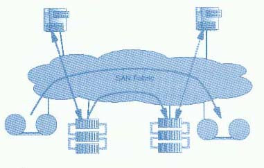 若所有的设备都与SAN相连,那么为一个或多个服务器增加存储容量就变得非常简单。根据SAN 配置和服务器操作系统的不同,能做到服务器不用停机或重新启动就可以增加或移走存储设备。