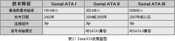 继2000年Serial ATA概念刚刚问世以后,在IDF2001上,由Intel公司与APT 科技、Dell电脑、IBM、希捷、迈拓这几大厂商组成的Serial ATA委员会正式确立了Serial ATA1.0版。而到了IDF2002 Spring时,虽然SATA的相关设备还未正式上市,Serial ATA委员会已抢先确立了Serial ATA2.0技术规范,以铁定Serial ATA的未来地位。