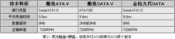 希捷公司推出的酷鱼V(SATA)算是全球首款串行ATA硬盘,它在外形上有点像是酷鱼四,单碟容量为60GB,最大集成两张盘片,达到120GB的容量。从希捷官方公布的数据上看,这款硬盘的寻道时间为9ms,比并行ATA的少了0.4ms,而它的缓存有2MB和8MB两种。值得我们注意的是,由于缓存的大小的不同所引起的性能差距以及SATA的厚度的增加。最后,这款硬盘不管是2MB还是8MB的,希捷公司均只提供一年质保,不像是WD或日立为8MB的提供了三年质保。据希捷公司宣称:“这款SATA接口的酷鱼V硬盘的内部架构全部是针对SATA重新设计的,而有的硬盘厂商是在原来并行ATA的基础上改的。”