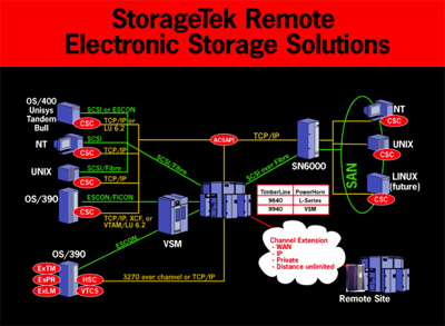 ? StorageTek的SN6000是世界上第一套虚拟SAN的产品,它分开了服务器与存储设备之间的直接联系。后端存储的任何变化不会导致前端系统的关闭或重新配置。