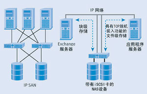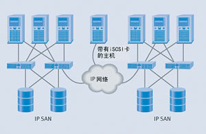 阶段三: IP SAN。完全的端到端的、基于IP的全球SAN存储将会随之出现,而iSCSI协议则是最为适合的。基于iSCSI的IP SAN将由iSCSI HBA构成,它可释放出大量的TCP负载,保证本地iSCSI存储设备在IP架构上可自由通信。一旦这些实现,一些IP的先进功能,如带宽集合、质量服务保证等都可能应用到SAN环境中。