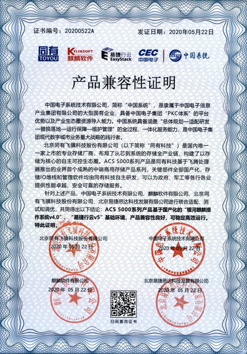 近日,易捷行云EasyStack与中国系统、麒麟软件、同有科技进行联合适配、测试和调优,共同得出以下结论:易捷行云新一代私有云产品EasyStack Cloud Service v5 (简称ECS v5 )与同有科技的ACS5000系列存储产品、银河麒麟操作系统V4.0产品兼容性良好,可稳定高效运行,满足用户关键性应用需要。这意味着同有科技正式成为首个完成PKC体系兼容互认证的存储产品系列,为PKC体系在全国的落地开花扫清了障碍。