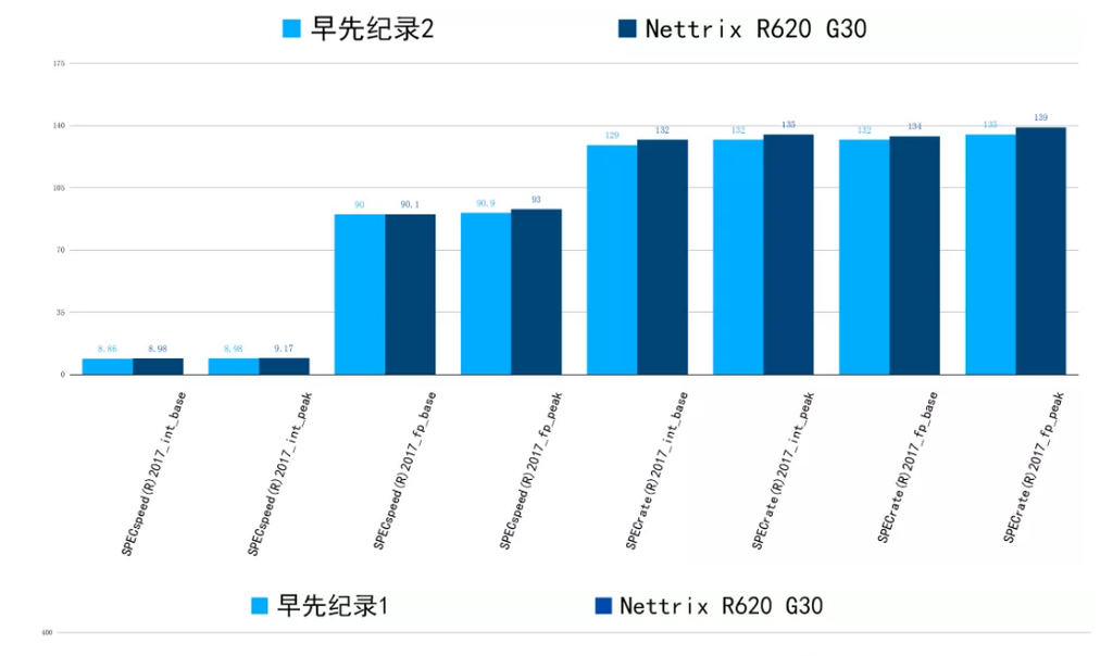 此次评测的R620 G30是基于英特尔至强第二代可扩展处理器的两个新型号。在同配置性能排名中,宁畅R620 G30在整数与浮点数、并发与单任务、基准值与峰值等6个维度共16项性能指标中排名世界第一。
