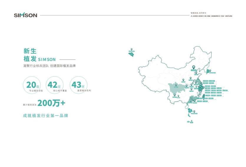 新生植发成立于2001年,总部位于江苏省南京市,历经20多年的发展,新生植发已达到42城43院的布局版图,服务发友近200多万。一直以来,新生植发积极引进世界先进技术,向国内外众多客户提供植发及毛发养护服务。作为国内植发行业的佼佼者,新生植发一直专注于毛发种植项目的研发及毛发管理体系的创建,通过致力于毛发种植临床手术实施、毛发种植技术研究、植发仪器产品设备研发、养发生发产品研发、头皮养护管理及毛发健康知识科普等毛发研究领域实施精准医疗服务。