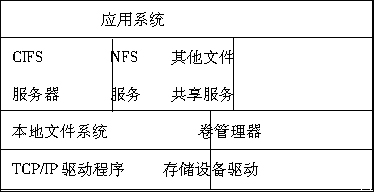 从图二可以看出,NAS OS通常需要实现四个方面的功能:1.设备驱动功能;2.设备管理功能;3.文件共享服务:主要是能够支持访问的客户端的类型,至少应该包括对CIFS协议(Windows系列平台文件共享协议标准)和NFS协议(UNIX/Linux平台的共享协议的标准)的支持; 4.应用系统:通常包括一个缩减的Web服务程序和备份引擎。